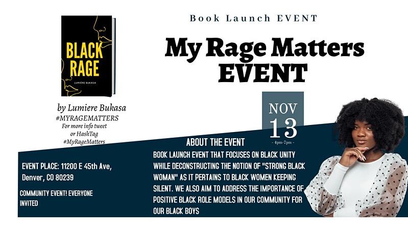 The MyRageMatters Black Rage Book Launch is an opportunity to validate the rage of any women that has ever experienced sexual violence, childhood abandonment and black women who've been forced to be the "strong black woman" while concealing their trauma. When women, especially black women face sexual violence, molestation by family members or childhood abandonment they are required to remain silent and endure. This book launch event is an opportunity to express rage and feel validated despite your experience. We will also spark conversations on the importance of positive black role models for the black boys in our community in the hopes to develop our community. During this book launch we will focus on community healing for survivors of sexual violence, childhood abandonment and black women vulnerability.